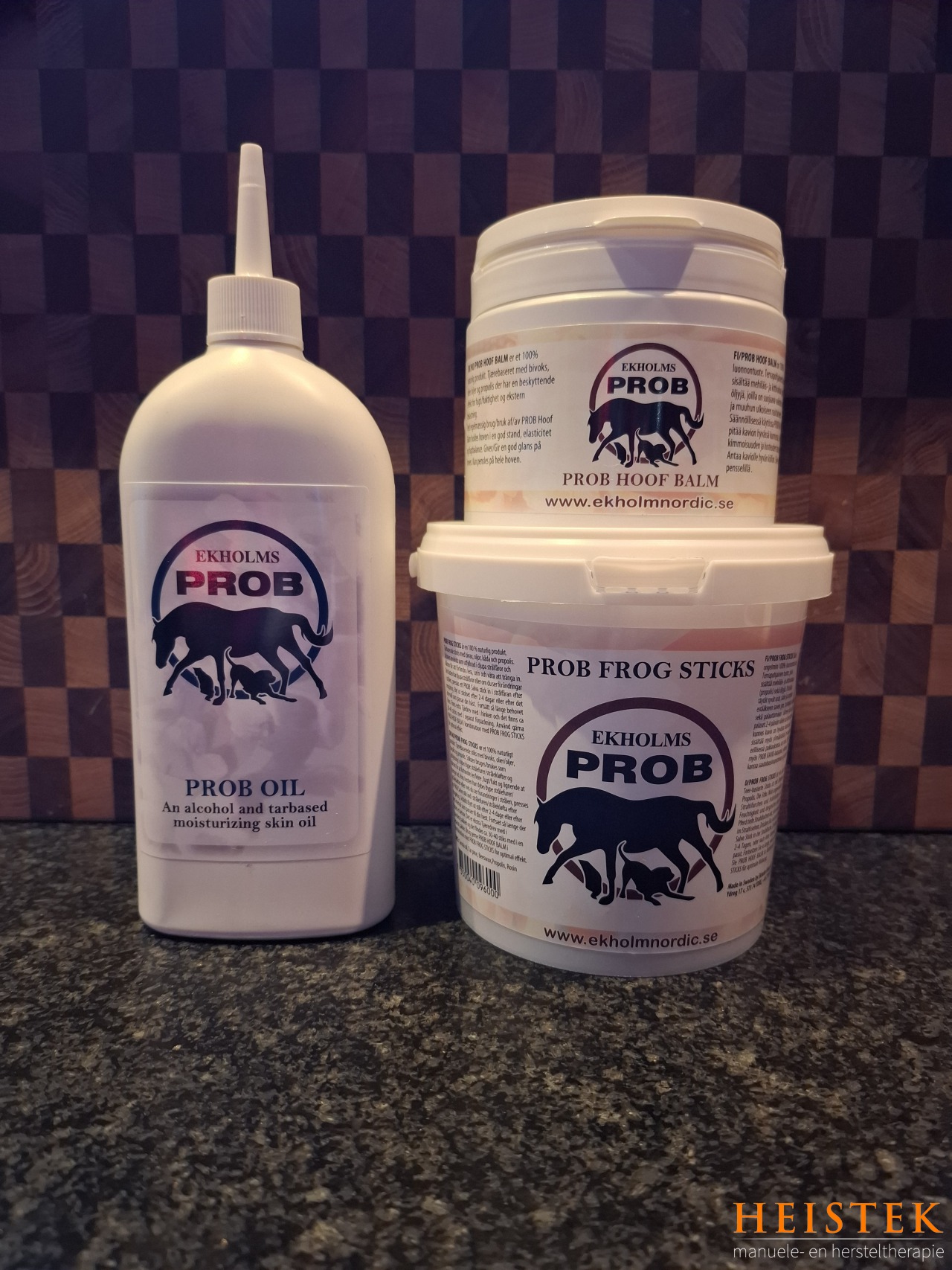 De Prob hoefverzorgings producten zijn verkrijgbaar in onze webshop voor de behandeling van rotstraal bij paarden en wordt zeer veel in onze praktijk gebruikt. Het is een effectief middel dat de bacteriën bestrijdt en helpt bij het herstel van de stralen. Tijdens onze behandelrondes hebben wij de Prob producten ook altijd bij ons en kan dan gekocht worden.